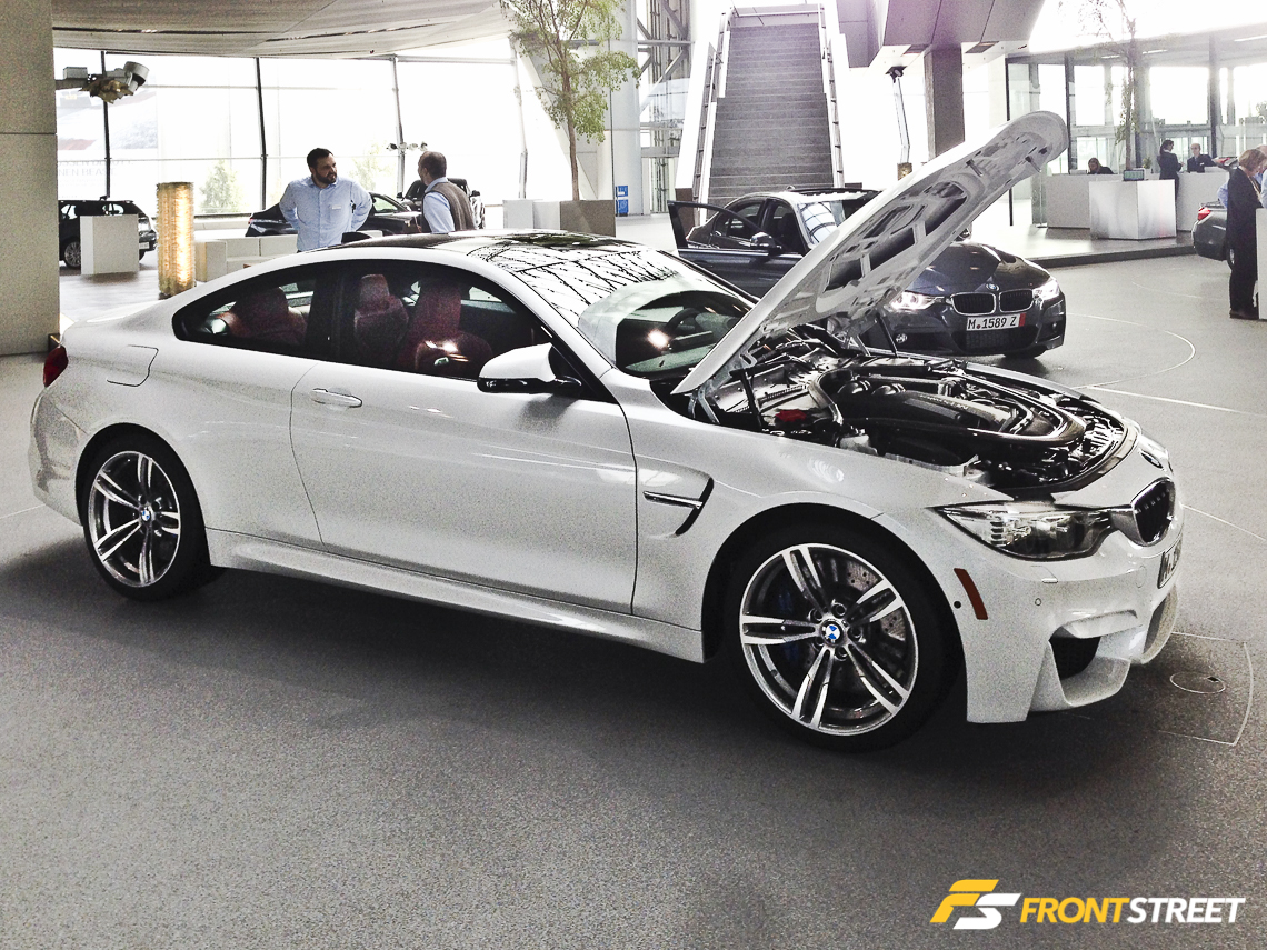 Once the owner arrived in Munich at the BMW Welt (“BMW World” in German), they were treated with hospitality similar to a five-star resort, only without the beach. After a bit of waiting, it was time to see the new sports car. A winding walk down numerous stairs led them into a room in the center of the building where the new Mineral White M4 rested, gleaming on a rotating platform for all to see.