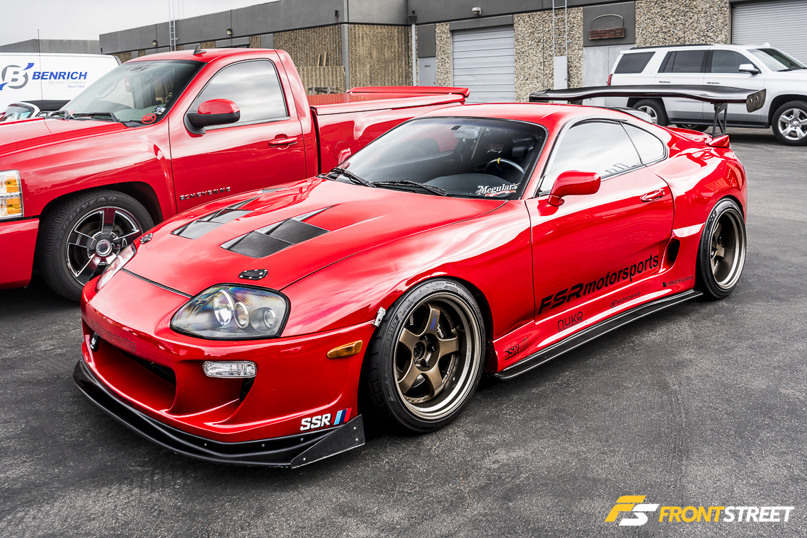 This spotless JZA80 Supra was recently honored in SEMA’s Battle of the Builders competition; it’s been fitted with BBS Motorsport E88 wheels. The machine exhibits creative ductwork that circulates air through the radiator and intercooler to provide optimal airflow over those components prior to exiting through the top of the hood.