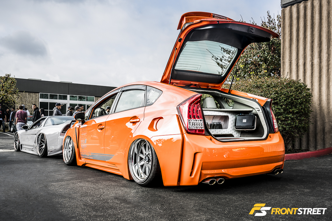 This highly-modified Toyota Prius is dissimilar to almost any other example on the road, as the orange hybrid wears the rare Mode Parfume Prius R widebody aero kit in order to house its huge SSR MKIII Neo wheels.