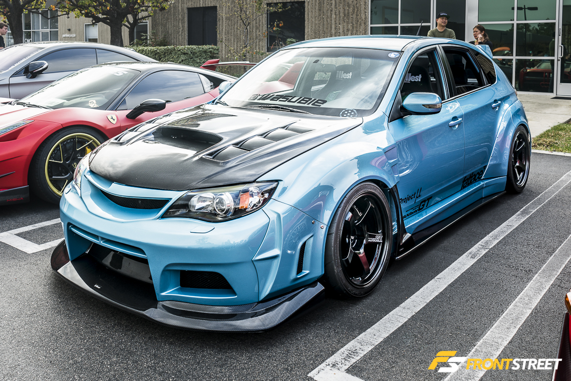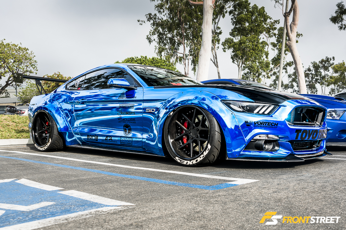 A few domestics even showed up to the import-laden affair. This Mustang’s three-piece Triumph CY.X wheels fill the widened wheel arches in a subtle manner to help contrast the shiny blue-chrome vinyl wrap inhabiting the entire exterior.