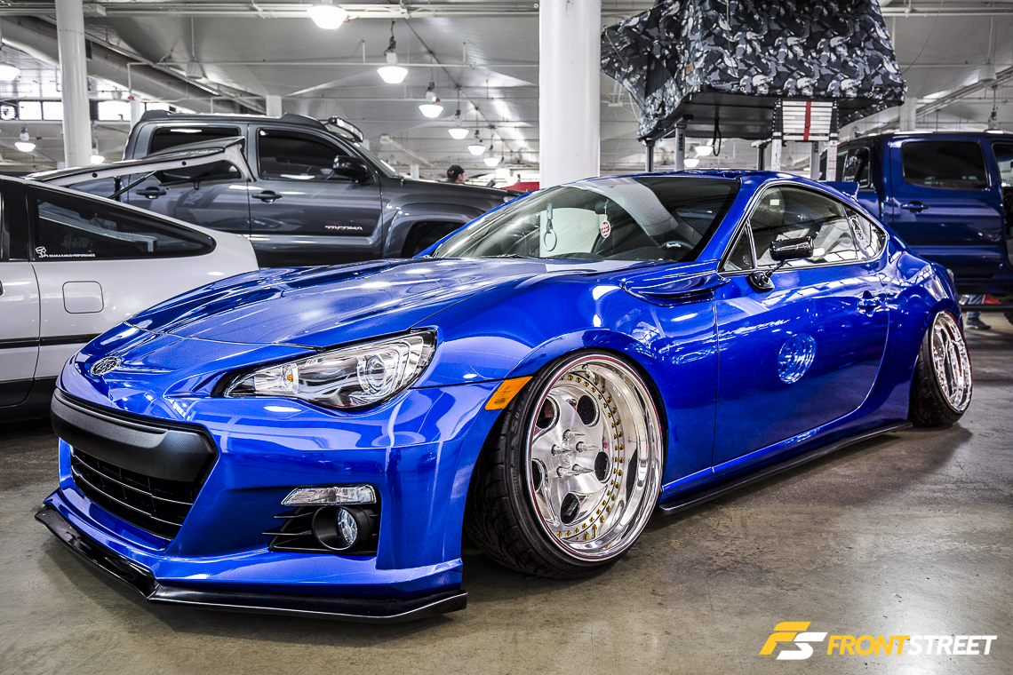 Stepped-lip three-piece VIP Modular VX610 wheels and air suspension create the inch-perfect fitment of this factory-bodied Subaru BRZ. It’s also been outfitted with a subtle accent lip kit.