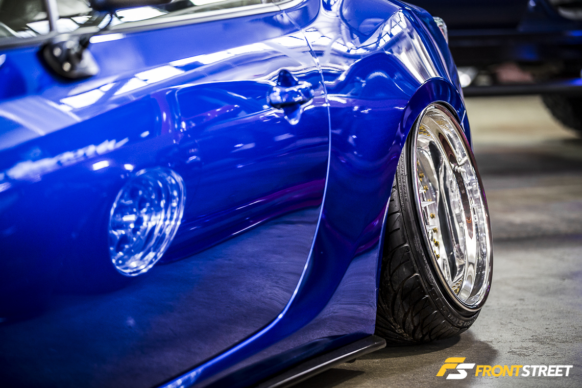 Koguchi Power widened rear over-fenders house the wide VIP Work Wheels, giving a wider stance and better grip when this car is out sliding sideways around corners at the track.