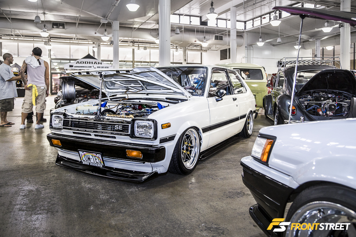 This Toyota Starlet continued the classic Japanese compact turnout at the occasion. With fresh Dunlop TE wheels mounted to the hubs, this properly clean hatchback showed that age is just a number at Wekfest.