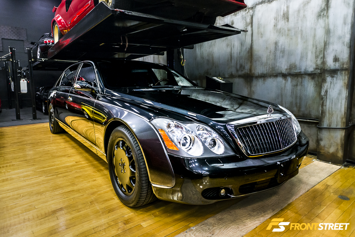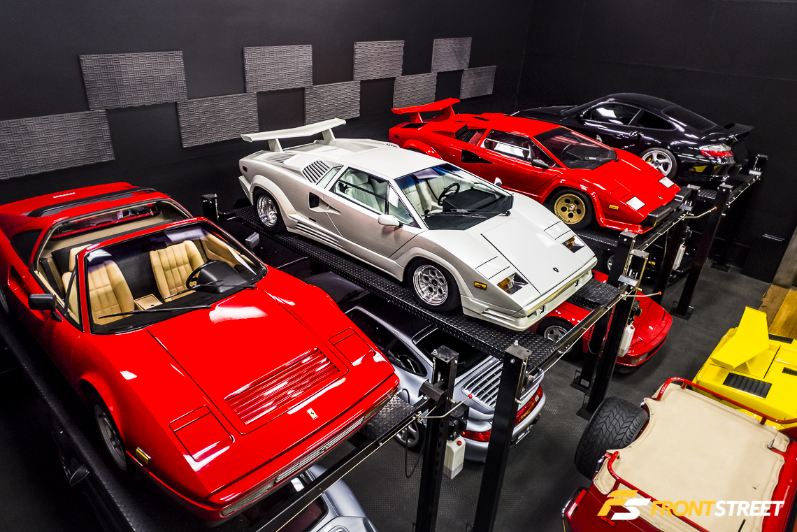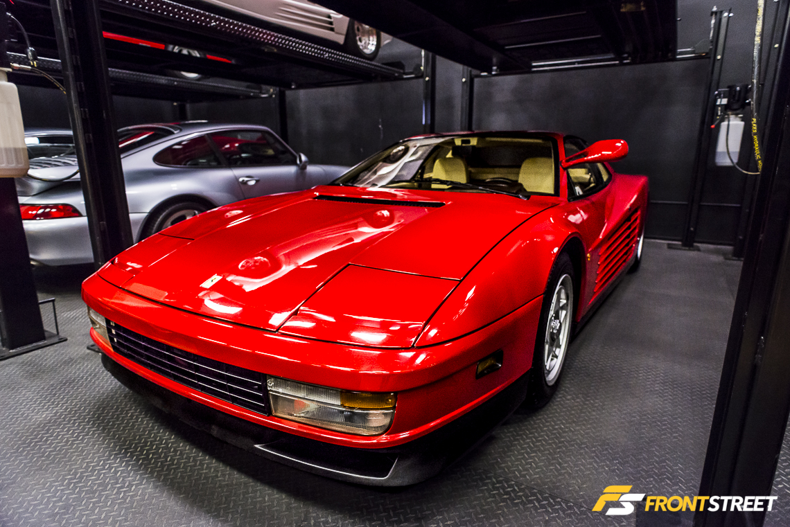 Elevated above the floor via its own lift, posed an automotive mixture of carbon fiber and red paint known as the Ferrari F40. With a curb weight around 3,000 pounds, Ferrari adopted a weight-saving strategy of spraying the paint very sparingly over the carbon fiber body to the point that it was possible to see the fiber’s weave protruding through its red coat. The vehicle’s lightened weight combined with a 470 horsepower twin-turbocharged V8 engine made the F40 the pinnacle of road car performance in its day; even today, the animalistic nature of the F40 is highly sought-after by enthusiasts looking to enter the arena of Ferrari ownership.
