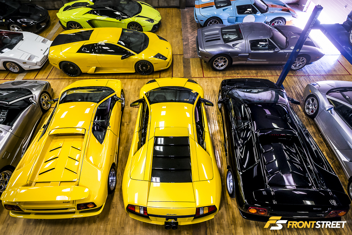 The hardwood floors are a product of the building’s previous life as a racquetball and fitness center. The owner of Interstate Motorsport, Steven Waldie, saw the opportunity to restore the location to its current condition and fill it with exotic automobiles. If it were a toy store, it would witness countless hysterical children, pleading to take home their favorite one. Even as an adult, it evokes the same emotion.