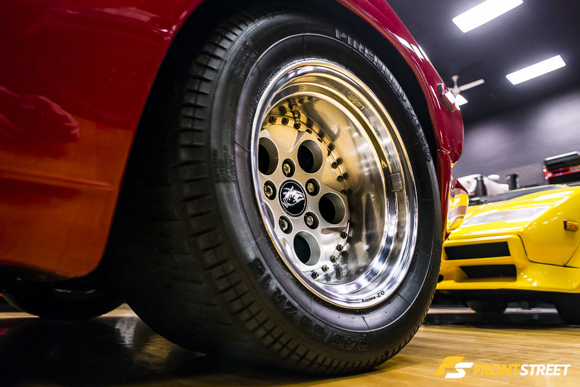 We’ll conclude our tour with a 390 horsepower, 4.9-liter F12 (flat 12-cylinder) engine out of a Ferrari Testarossa awaiting its transplant home, and a set of Lamborghini Diablo rear wheels with original Pirelli P-Zero tires. Interstate Motorsport offers purchasing and sales options for rare and exotic vehicles, a place to store customer cars, and service bays, cementing its status as an automotive enthusiast’s adult toy store.