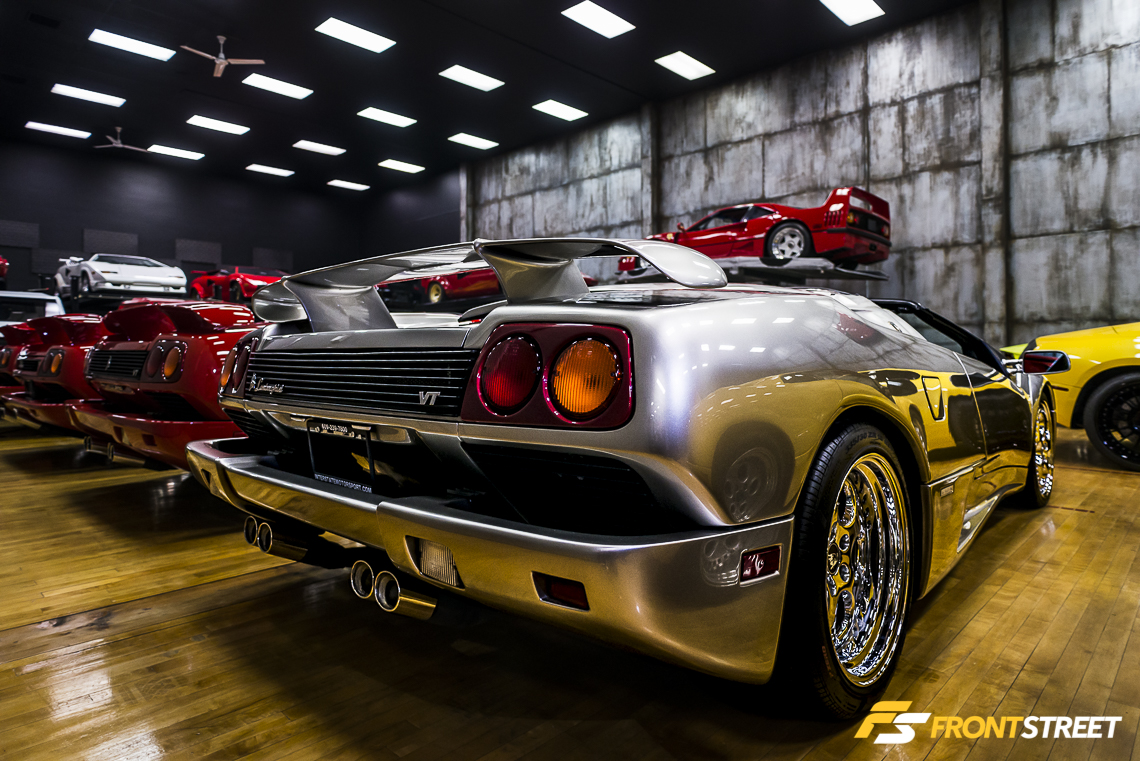 In 1999, Audi overhauled the Lamborghini Diablo by improving the interior with a modern dashboard, then cleaning up the exterior by removing the dated flip-up headlights. This particular Roadster VT sports the improved aerodynamic look, which sets it apart from the rest of the older Diablo cars in the building.
