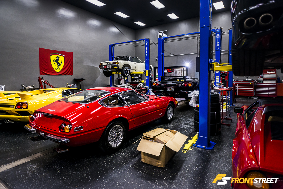 This Ferrari 365 GTB/4 Daytona lay gleaming in the middle of the service room. These cars were blessed with a 350 horsepower DOHC V12 engine, and received their nickname after Ferrari finished 1-2-3 in the 1967 24 hours of Daytona. This particular example had a plush period-correct beige leather interior that oozed class.