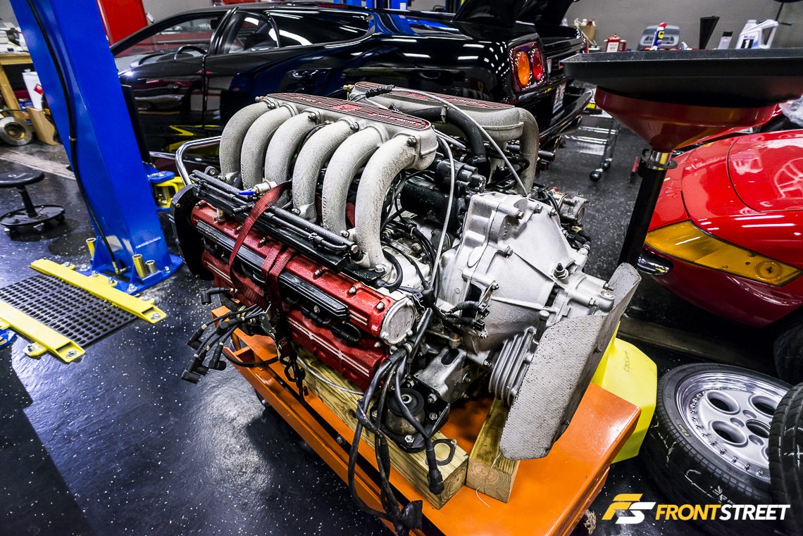 Amongst the vehicles being serviced were a pair of red Ferrari classics. This completely spotless Ferrari 328 GTS has such aggressive styling, bearing some of the same trademark ductwork as the famed GTO.