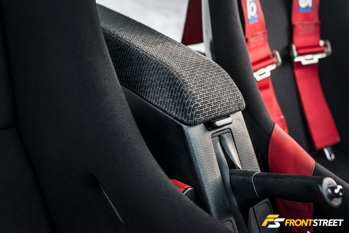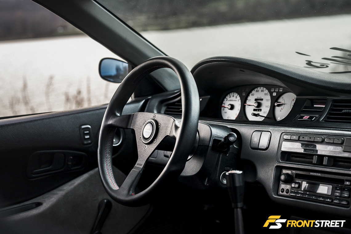 The exterior hosts its own collection of goodies like the fiberglass front brake ducts from Echelon, a new OEM front lip, and the OsakaJDM EG Devil Wing. This particular wing is the sixth unit produced and was shipped directly to his door from Japan only days after the design was released to the public.