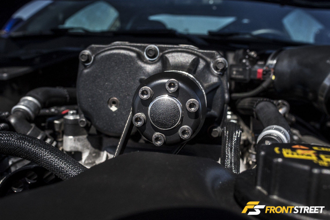 So where does the extra power come from? Atop the engine sits a VMP Tuning Gen 2 TVS supercharger system pumping out 21-plus pounds of boost pressure. Aiken is pushing the supercharger to its limits; with a smaller pulley the compressor would likely become inefficient and potentially lose power.