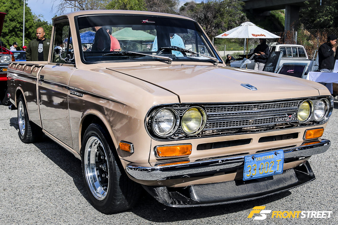 While taking pictures of Victor’s ride, I caught a glimpse of a familiar face. Sport Compact drag racing icon Erick Aguilar brought out both his resto-mod 240Z along with a wildly-modified ’70 Datsun 521 truck. For those familiar with Erick, the legend made a name for himself in the Honda world as the driver of the first all-motor Honda to break the nine-second barrier in the quarter mile.