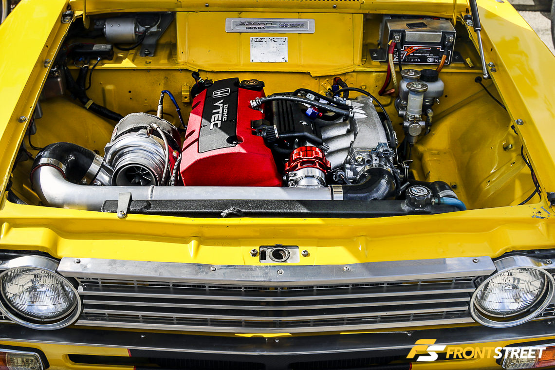 “I grew up owning a lot of Datsuns, so when it came time to modify my 521 truck, it was a no-brainer to install an F22C motor from a ’04 Honda S2000,” says Aguilar.