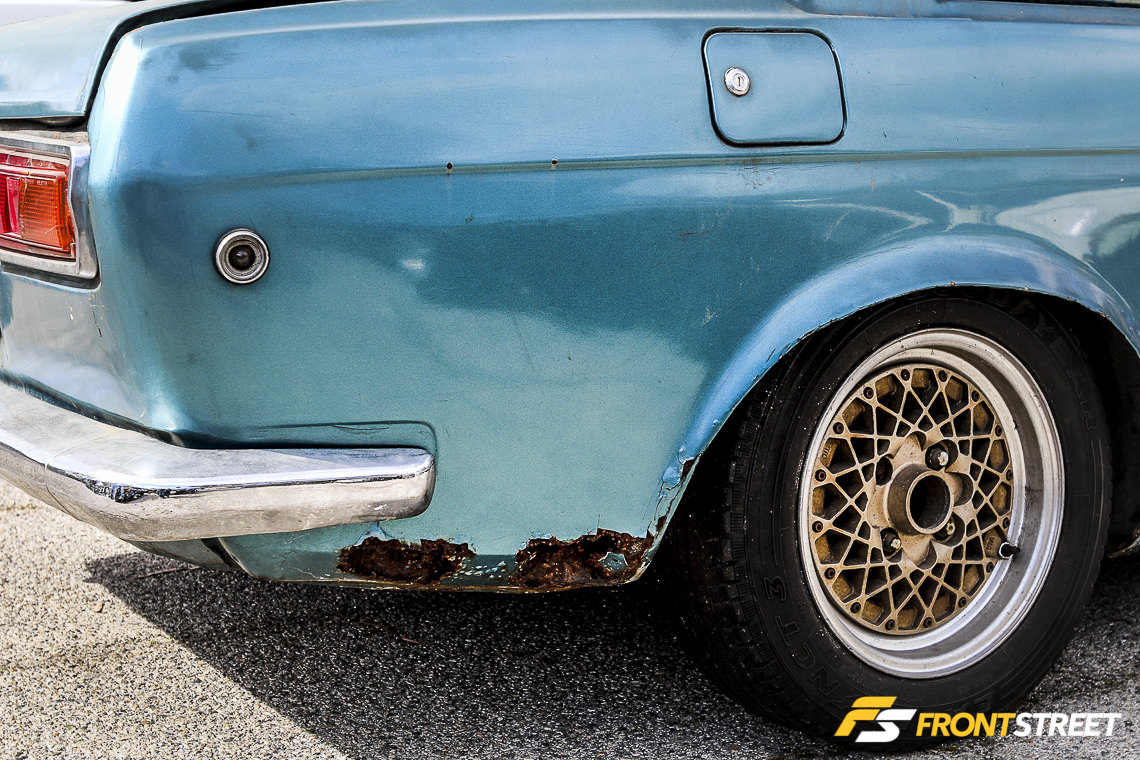 We managed to walk no more than 500 feet from the entrance before we stumbled upon a show-worthy ’71 Datsun 240Z owned by Rick Garcia. The body has been massaged and slathered in a Hawaiian Tropic green hue, an OE pigment found on the 2011 Toyota Sienna. Tucked under the over fenders is a set of Simmons V5 wheels in 18 x 9.5/18 x 11.5-inch (R) fitment, with an impressive five inches of lip on the outside.