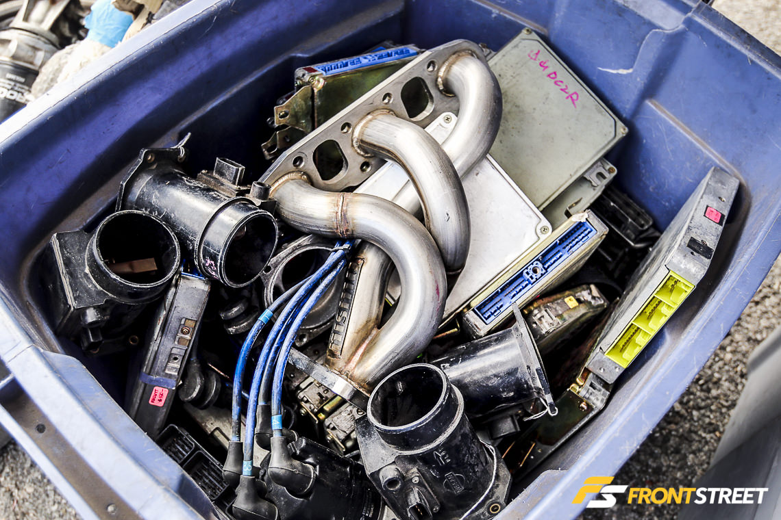 With less than an hour before the end of the event, I quickly rummaged through multiple parts bins stacked with JDM goodies inside the Garage Boso booth. If you follow the drifting scene, you’ll recognize the company’s name from their association with Formula Drift competitor Ross Petty, who has become a regular at this swap meet.