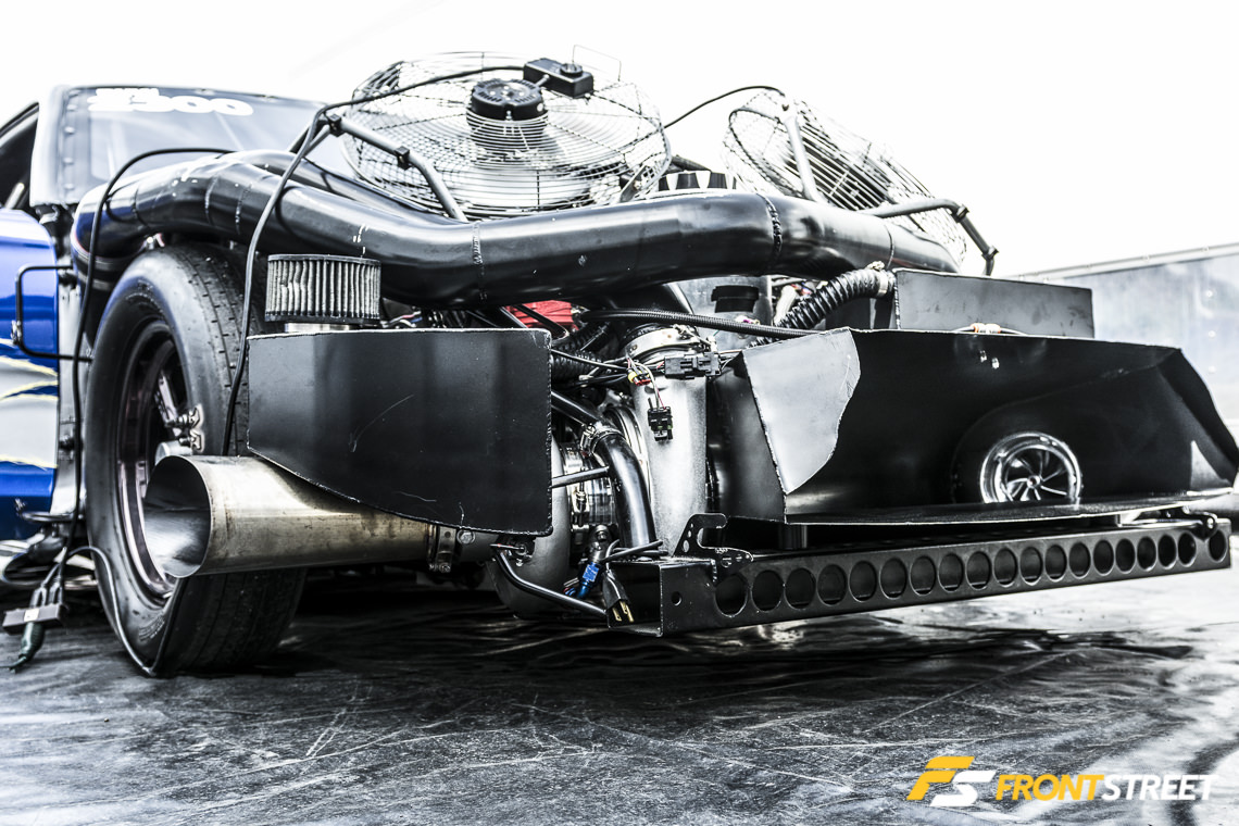 When one thinks real street car, “Beast Mode” must be considered. The Tom Bailey-owned and driven, Skinny Kid Race Cars-built, Steve Morris-powered Drag Week machine strapped on the tiny-by-comparison radial tire and qualified ninth in RvW with a stout 4.24 at 177.72 mph from the turbocharged, 615-cube big-block Chevrolet engine. The engine was still in Drag Week trim, wearing 88 mm turbochargers rather than the 102 mm pieces used by the other class competitors.