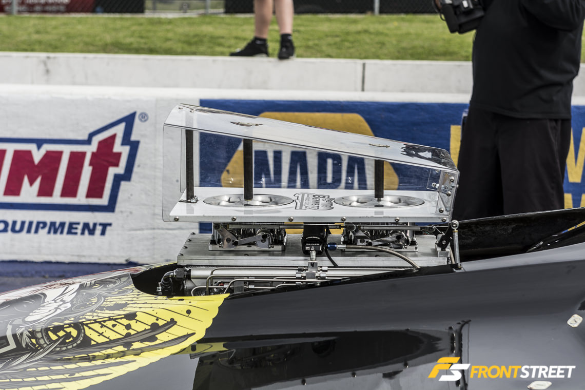 Speaking of Butch Kemp, he was many folks’ leading choice to take home the Ultra Street win, had the weather not disrupted everyone’s plan. He qualified at the top of the ladder with a 4.800 at 144.32 mph, just a tick-and-a-half ahead of Joel Greathouse’s 4.815. In his matchup against Hays, Kemp went on to run the quickest Ultra Street pass of all time, clipping off a 4.77 at 145.72 mph. He was scheduled to face Greathouse in the final, who had eliminated Shawn Pevlor in the other semifinal.