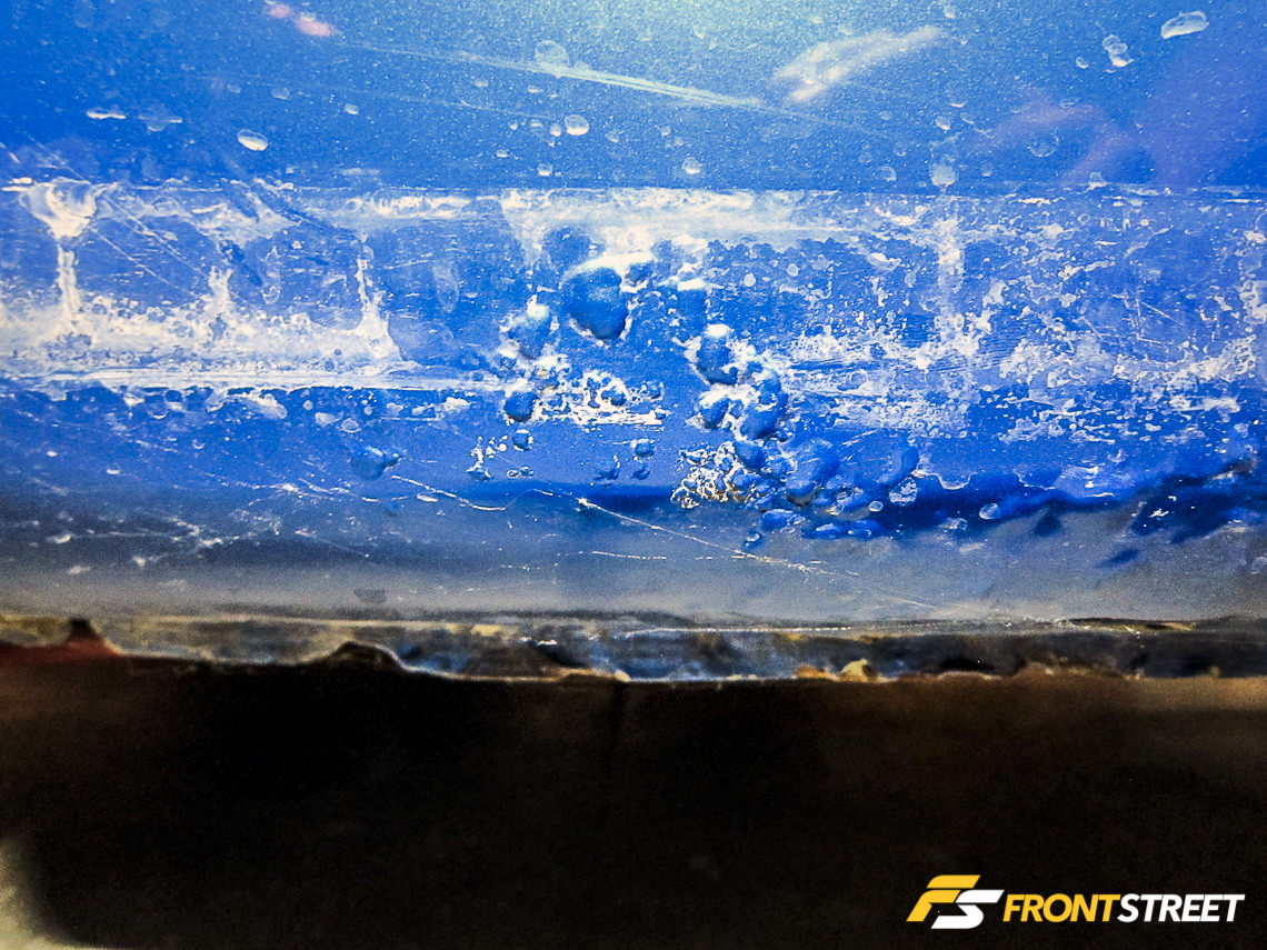 Our fears became reality when we noticed bubbling from under the paint. The previous owner decided to patch up the rusted area with body filler, which was a temporary solution; all it took was an incision with the chop saw to reveal the grim discovery. If you find rot on your automobile you will probably need the assistance of a fabricator or will need to replace the part or panel all together. Luckily, we were able to source OEM replacement panels for both driver and passenger sides from a donor car.
