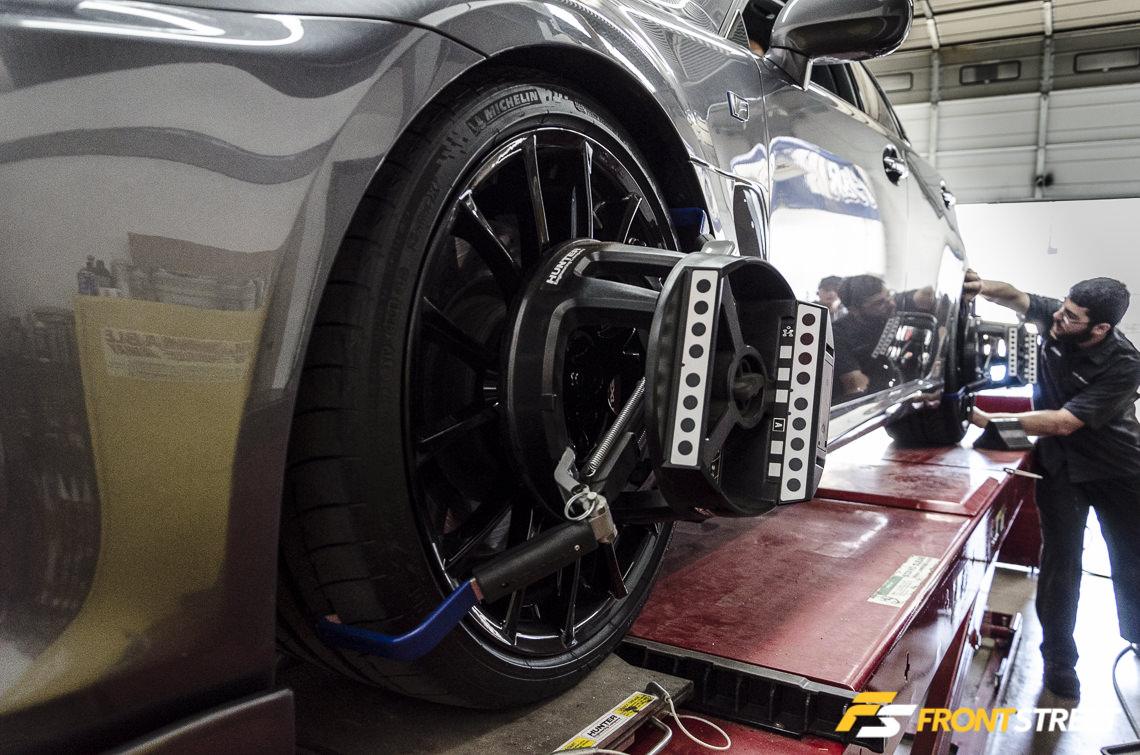 As far as wheel alignment goes, Lang says that the IS-F has toe adjustments front and rear; the alignment is straightforward unless the vehicle is lowered with camber arms.