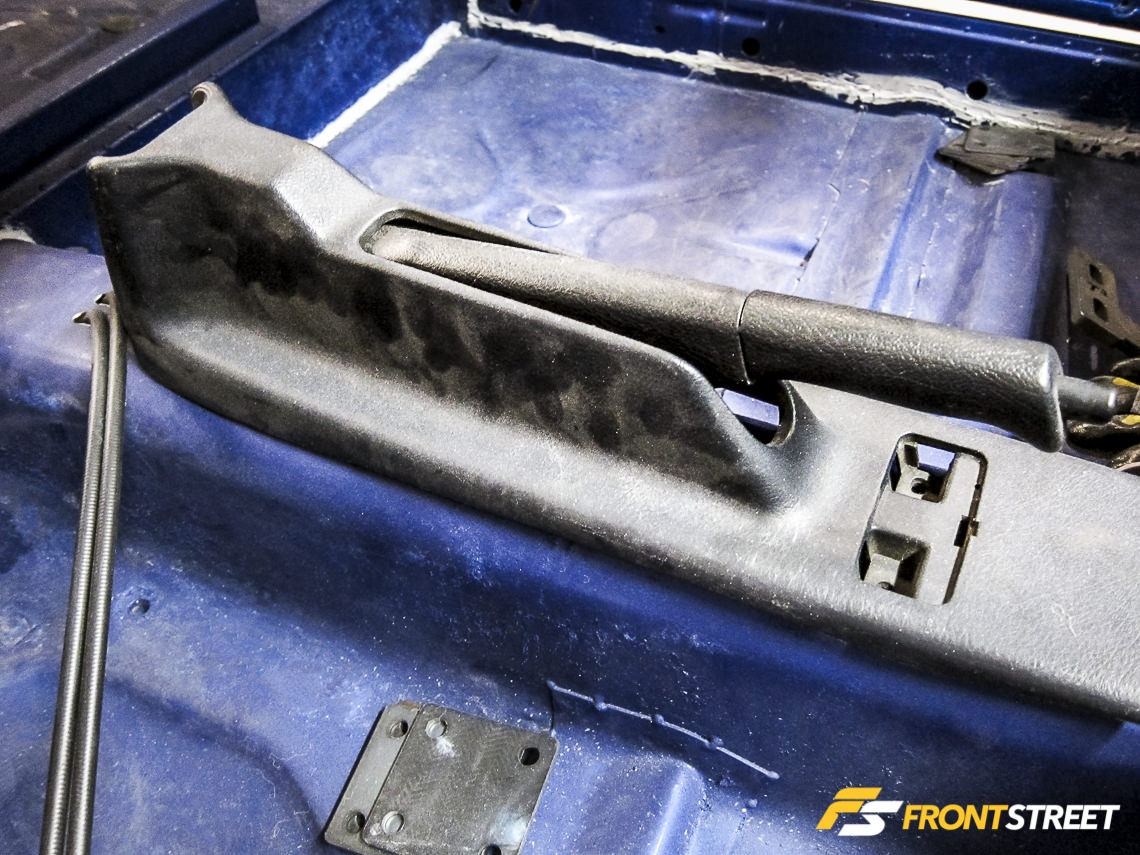 Initially, we planned to use an E-brake we scavenged from the 280ZX but found an alternative solution – the entire assembly from a Honda Civic works as a retrofit of sorts. The Honda piece was installed into the tunnel and tied into the rear brake calipers using a Lokar universal brake kit. This is just a small sample of what’s in store from the H-badge family used in our 510, so stay tuned!