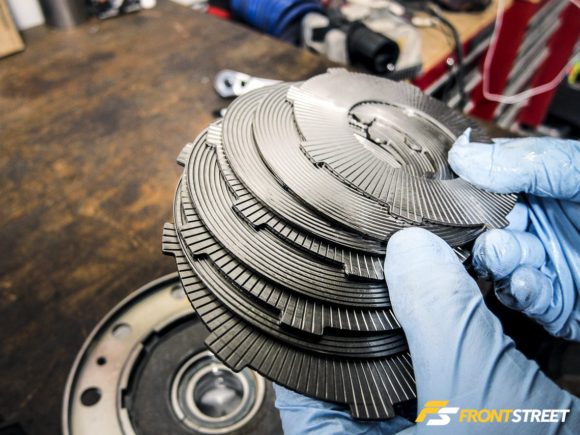 Finding a CLSD (clutch limited slip differential) in a 10 mm gear bolt design for our R200 long nose was nearly impossible. To remedy the situation, we decided to purchase a brand new unit from Kaaz USA that was designed for a Nissan S13 R200 short nose. The Super Q LSD 1.5-way unit comes with special clutch packs already prepared with WPC treatment for smooth engagement, improved heat dissipation, and longer gear life.