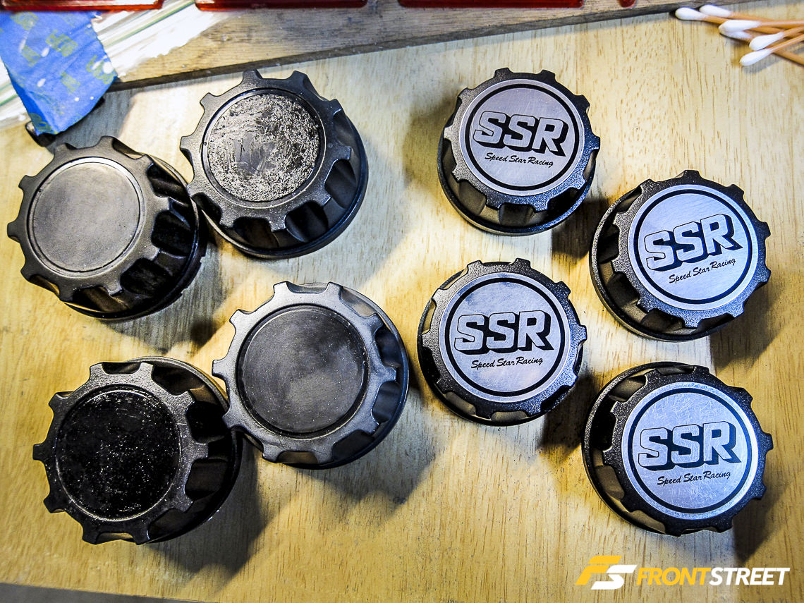 Literally no wheel was left unturned (no pun intended) for this project including when it came time to purchase a set of wheels. We found a set of SSR Formula Mesh wheels from a local seller, which we consider the perfect wheel for our project. The wheels were in bad condition as they originated in the ’80s; they’ve resisted the test of time, but still needed to be tuned up for use. We disassembled the 3-piece wheel and sent out the lip for polishing while the centers were stripped of their original paint and powder coated in gunmetal gray, then the hardware was replaced prior to reassembly. The center caps were the most difficult components to source as plastic becomes brittle over time. A total of two sets were purchased in order to create one quality set but not before they were refurbished and recoated before reapplying the SSR decals. We are so pleased with the outcome of our refinished pieces – and the fitment was dead on.