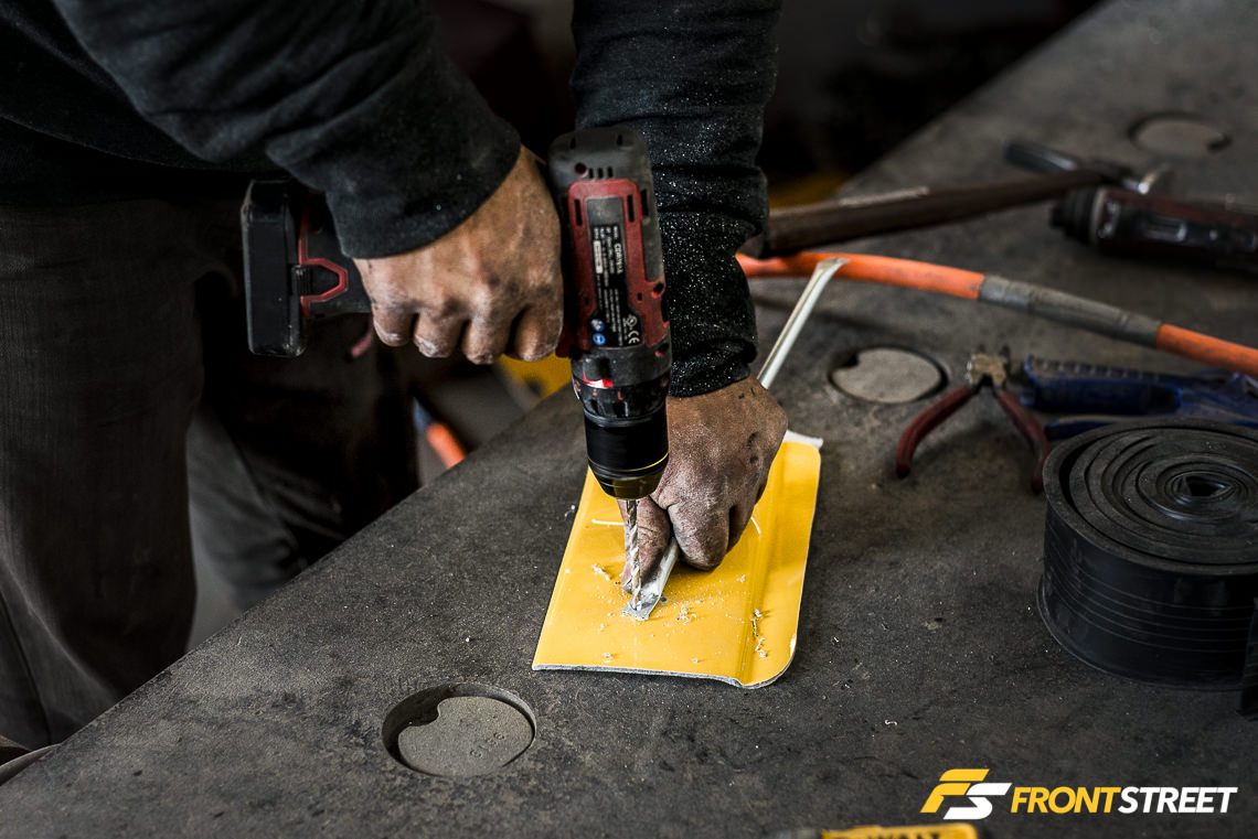 The material removal severely affected the structural integrity of the bumper, causing it to flex in the middle. Within seconds, Nakai started to create a set of aluminum braces to strengthen the flimsy fiberglass.