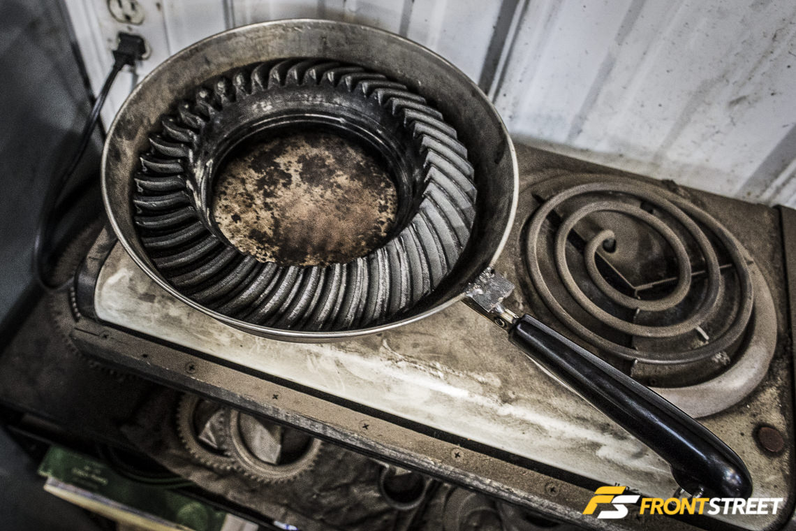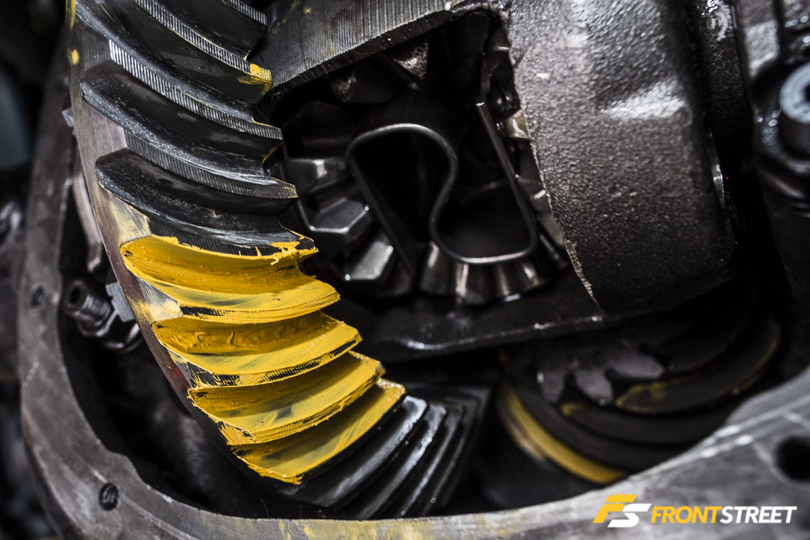 “When you’re under load, you want the pattern to be low on the toe side of the gear teeth because under acceleration the pinion will ride up to the end of the gear. If you don’t set the pinion low, it will break the teeth off on the high side as the pinion climbs the gear, so we set them up with a real deep pinion.”