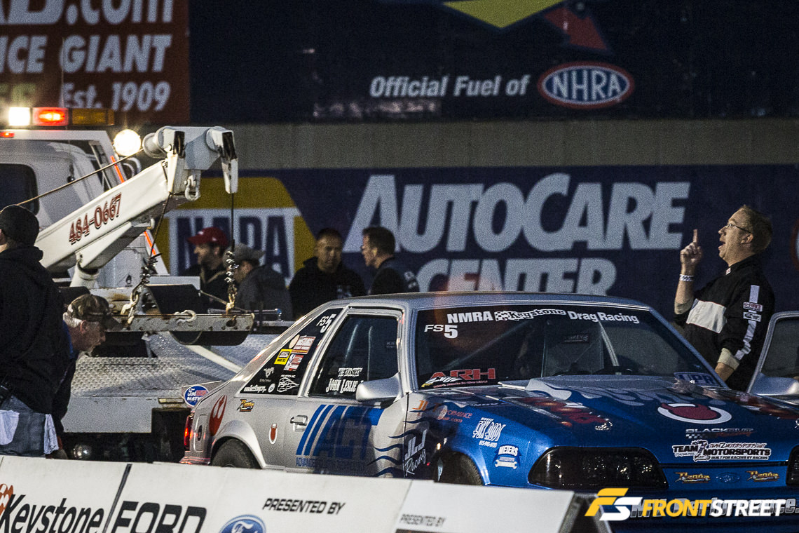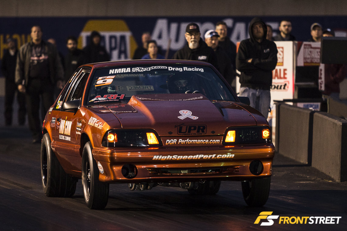 Both Drew Lyons and Carlos Sobrino turned in what would have been record-setting passes in Coyote Stock – Lyons with a 10.13 and Sobrino with a 10.15 – only to have them thrown out for failing fuel check requirements. Lyons, to his credit, turned right around and blasted to a 10.15 in the first round of eliminations on a single pass.