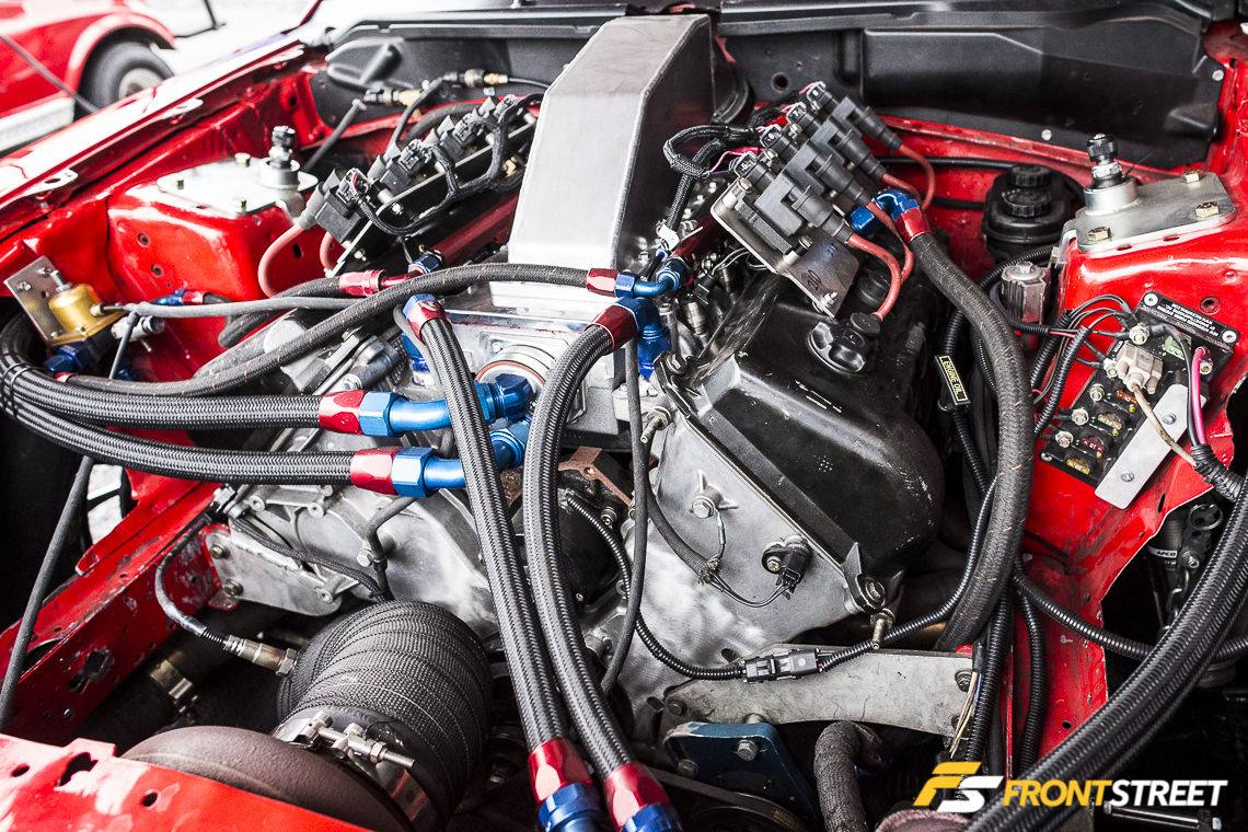 Three days prior to the event, Florida’s Joe Guertin had an engine on the hoist waiting to be installed into his ProCharger-boosted Coyote Modified machine.