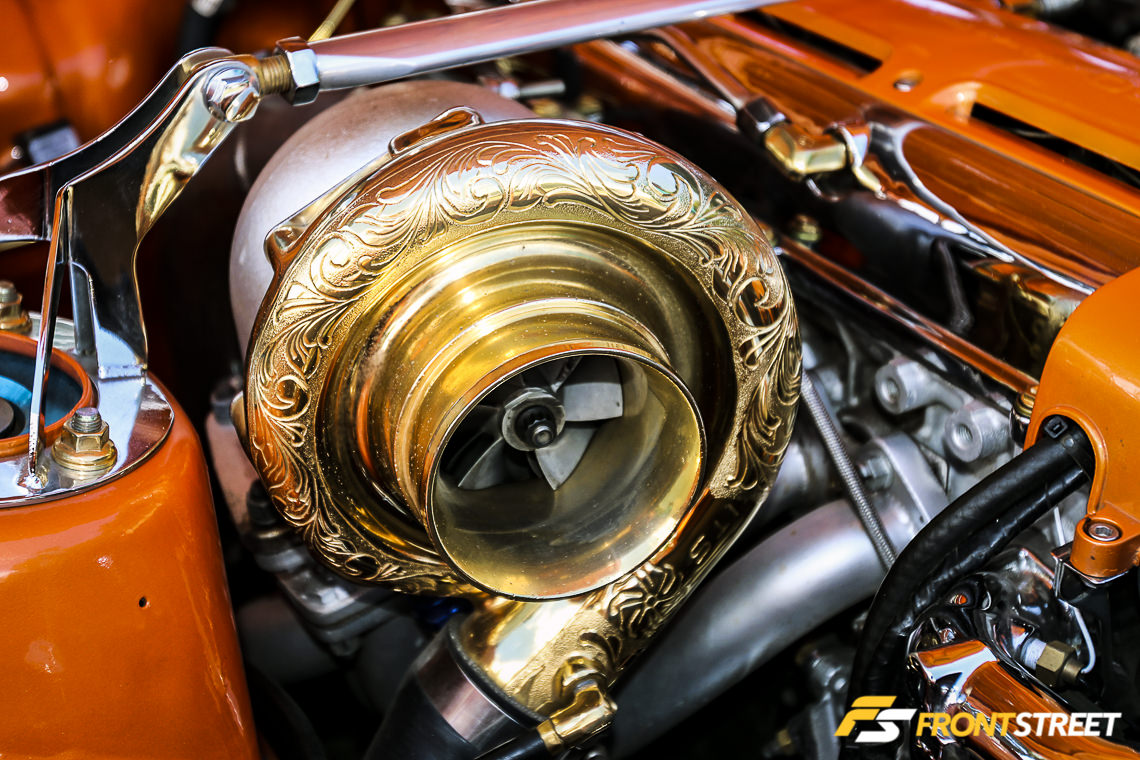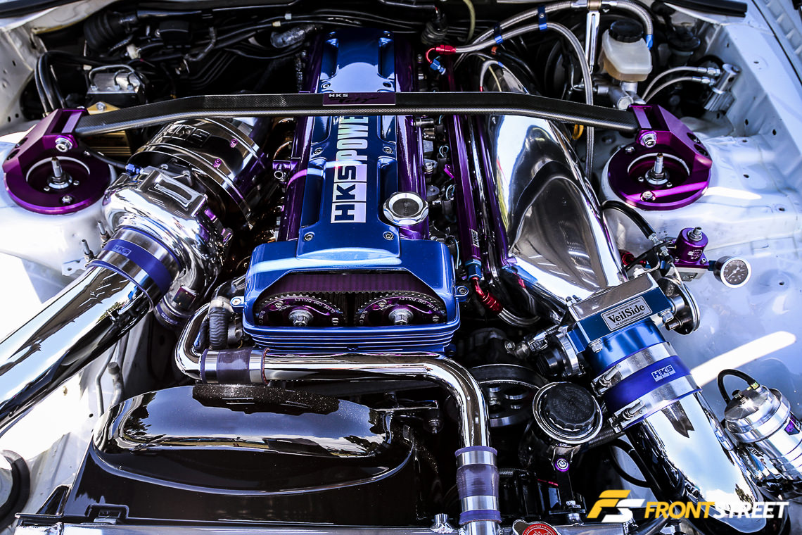 Noteworthy from this year’s event was the re-emergence of this award-winning Supra owned by Lisa and Ryan Uchida. Prior to its debut here, the car sat tucked away in storage for six years. When the Uchidas decided last-minute to display their work of art, all they did was simply dust off their timeless classic and refuel before taking the trek to Long Beach. Flawless in both quality and build, this ’97 anniversary edition Mark IV has a laundry list of HKS parts installed; the turbo, fuel system, and camshafts are all HKS-branded.