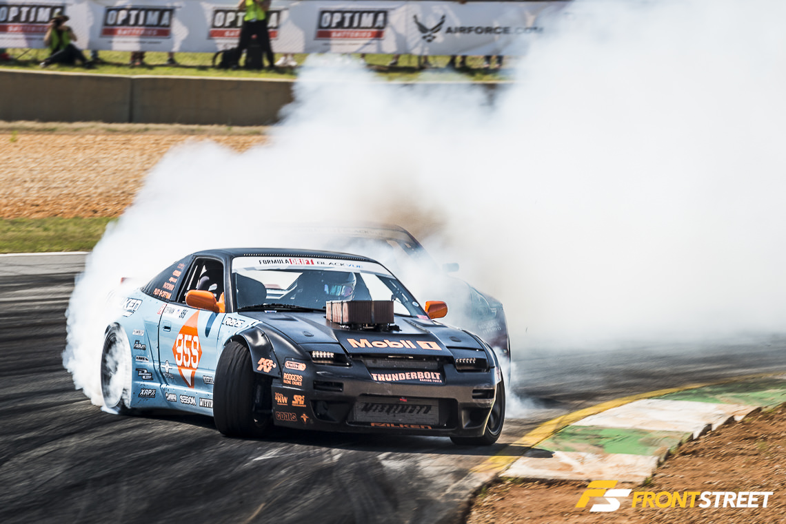 The tandem between Alec Hohnadell in his Enjuku Racing Nissan S14 240SX and Tanner Foust was a symbolic passing of the torch, as the new-gen racer Hohnadell competed head-to-head with the past champion and won.