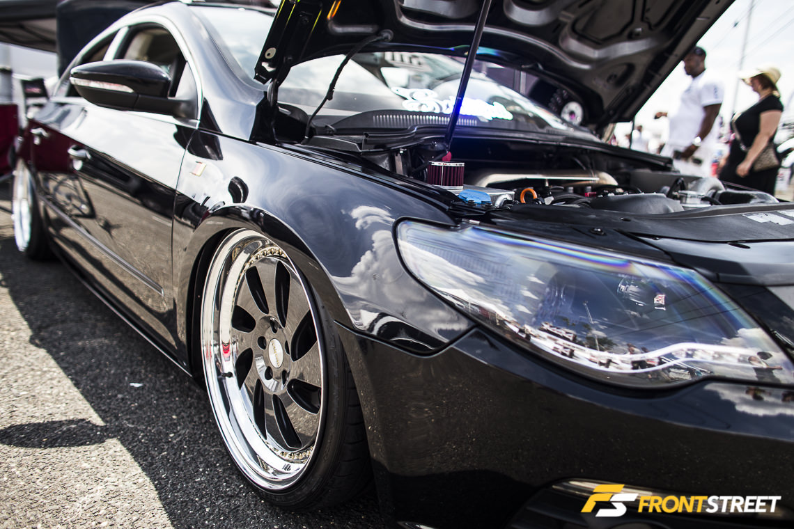 A big Precision Turbo 5858 snail, TiAL wastegate, and Integrated Engineering intake manifold were just a few of the mods lurking under the hood of this super-clean VW CC rolling on Rotiform forged WRW wheels and Falken Azenis FK 459 rubber. The car is bagged, slammed, and blacked out. I’m not usually a fan of the bagged look (maybe it’s my drag racing roots?), but this car carried it well and wasn’t overdone and too ostentatious. A nice piece!