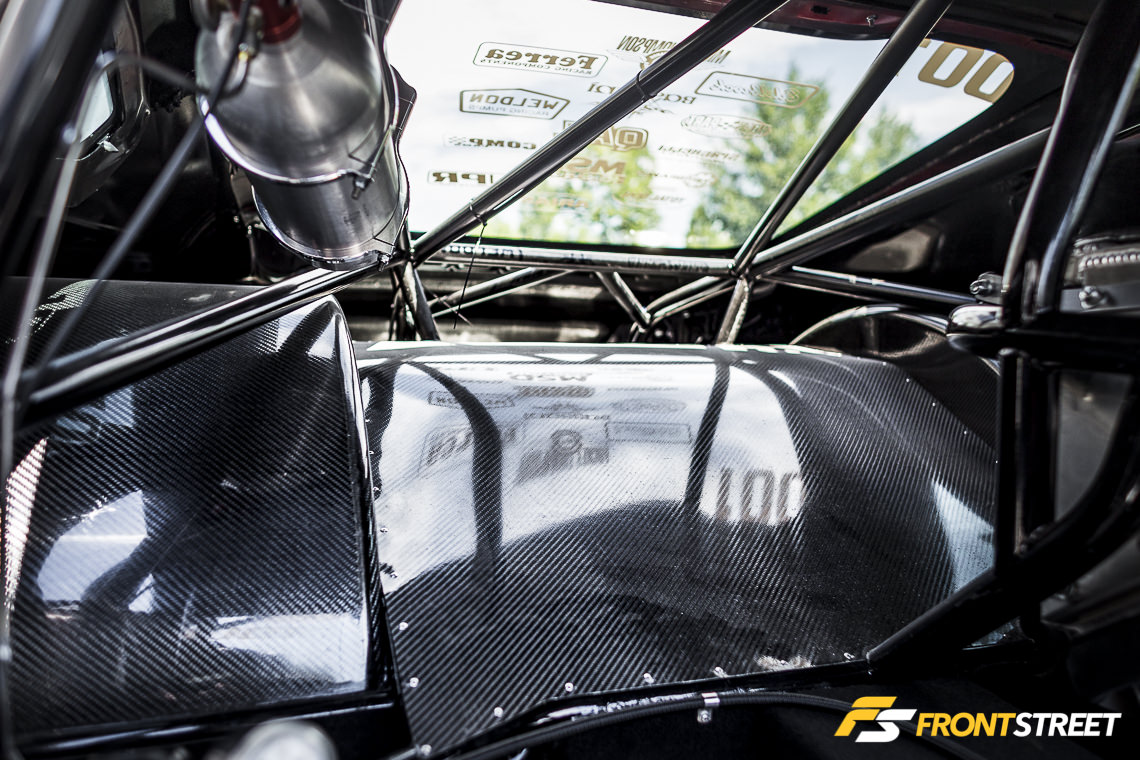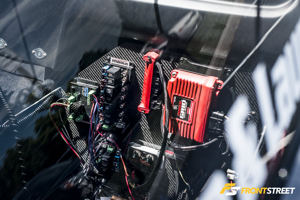 What good would Urist’s own car be without a turbo system developed by Hellion Turbo Systems? The company he co-owns with partner Dwayne James developed the kit in-house specifically for this application, with stainless-steel headers and a five-inch aluminum driver’s side exhaust dump. All tubing is from longtime Urist sponsor Bassani Manufacturing, while the wastegates and blowoff valves are from Turbosmart USA.