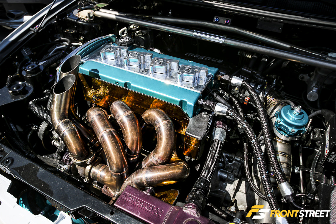 A true enthusiast will tell you that their work is never complete when it comes to building a project car. Just ask Karl Magtoto to hear about the long journey he took while building his ’06 EVO 9 MR. Magtoto’s Evo was outfitted with a laundry list of Voltex Aero body parts including a Voltex wide body kit, hood, trunk, wing, and canards. The engine received a full treatment of rare parts, including an OriginFab titanium intake pipe, ARC intercooler pipe, Garage HRS titanium Dolphin-tip exhaust, and Tomei exhaust manifold. The interior was upgraded with a pair of Bride Gias II Lowmax seats and Takata 4-point harnesses, while Bride fabric was reupholstered throughout the entire interior including the headliner, and a Cusco 6-point roll cage was set into place. A set of 18×10.5-inch Volk Racing TE37 wheels are wrapped in 265/35-18 Toyo Tires R1R’s.