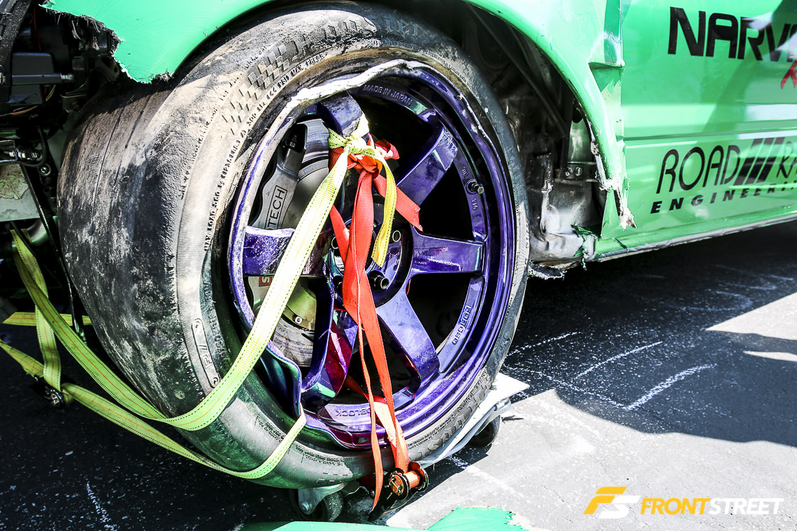 Walking along vendor alley at this years MOD, we were surprised to see the Narvaez Racing Evo 8 on display at the Whiteline booth, along with a slew of body parts retrieved from the wreckage. Roy Narvaez, driver and owner of the Hulk Evo, recalled the tragic moments just seconds before the crash.