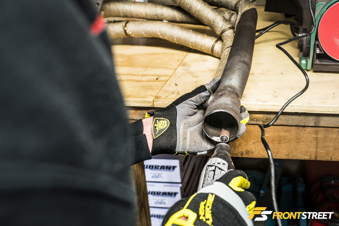 After some careful measuring, Lettieri mapped out the perfect place to splice the flange from the header’s collector and let the fireworks commence.