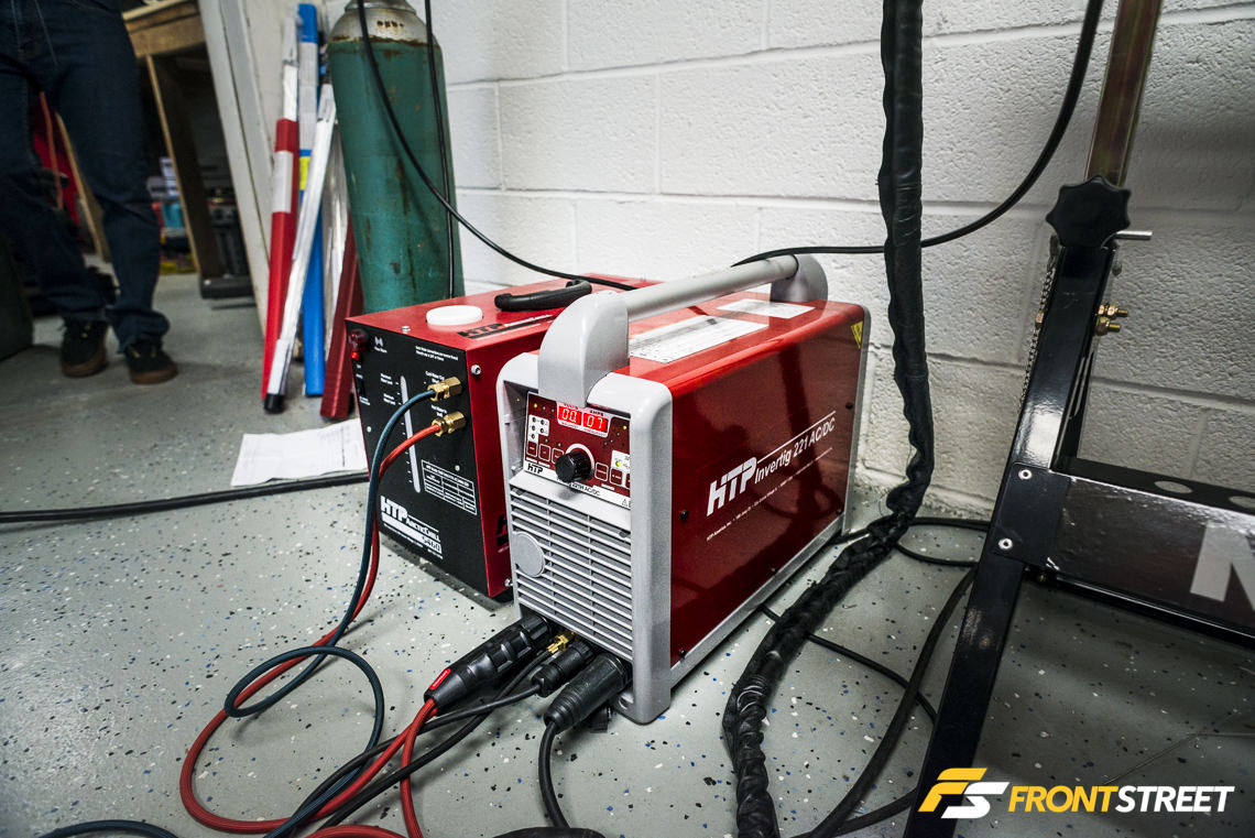 Unfortunately, a slight miscalculation by me resulted in the mating of a 2.5-inch V-band connector with a 60mm (approximately 2.35-inch) piece of the foreign market header. Unbothered by it, Lettieri began laying the first tack welds on the connector with his HTP Invertig 221 TIG Welder, eventually cleaning up the material mismatch masterfully.