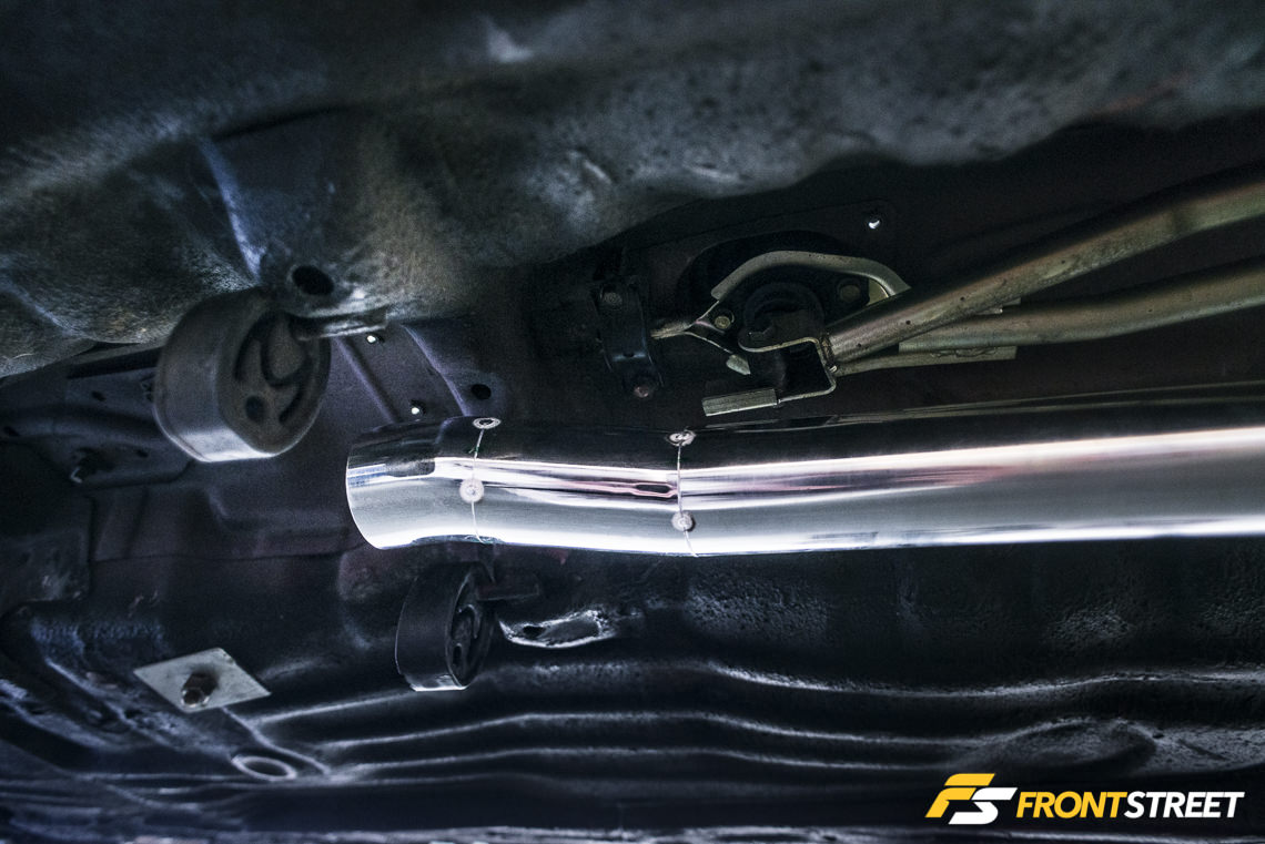 One component that has always bugged me is the stretch of stainless steel exhaust piping that stretched the entire length of the floor. It’s just an outlet for burnt exhaust gases to escape the engine and find their way to the atmosphere – preferably behind the driver’s nostrils. So why does it have to be made out of heavy steel, and why does it need to meander through a maze of power-hindering bends before it exits at the furthest rear point of the car? Along with the help of a friend, I decided to tackle this issue head-on and create my own lightweight exhaust from scratch. As stated above, the goal is to not only shave weight, but remain drivable, while increasing the exhaust flow in the process.