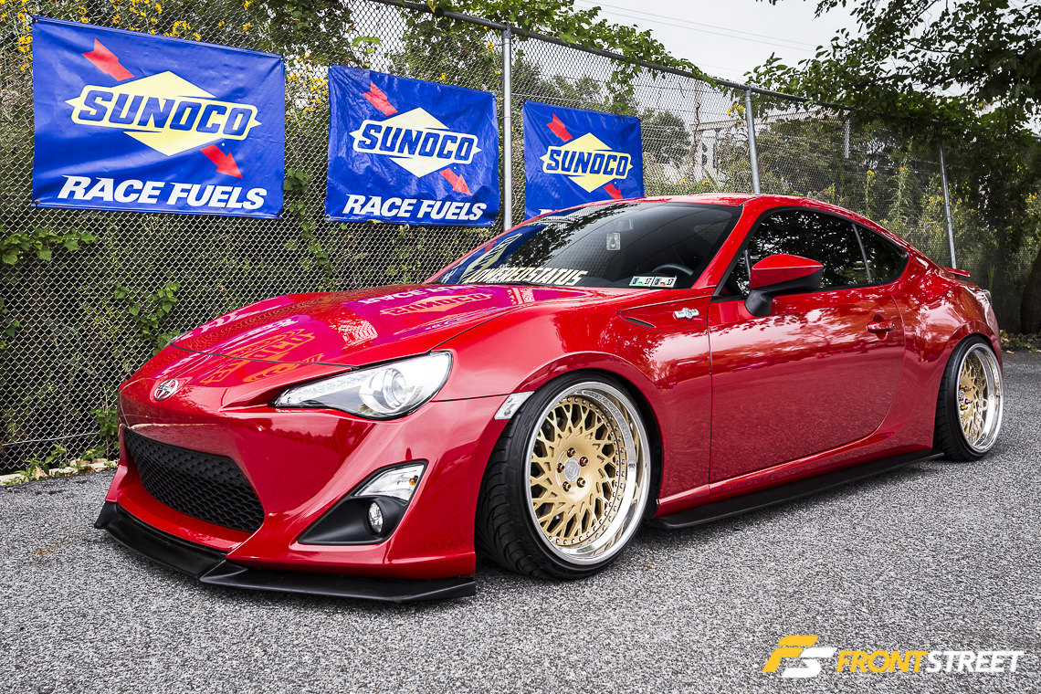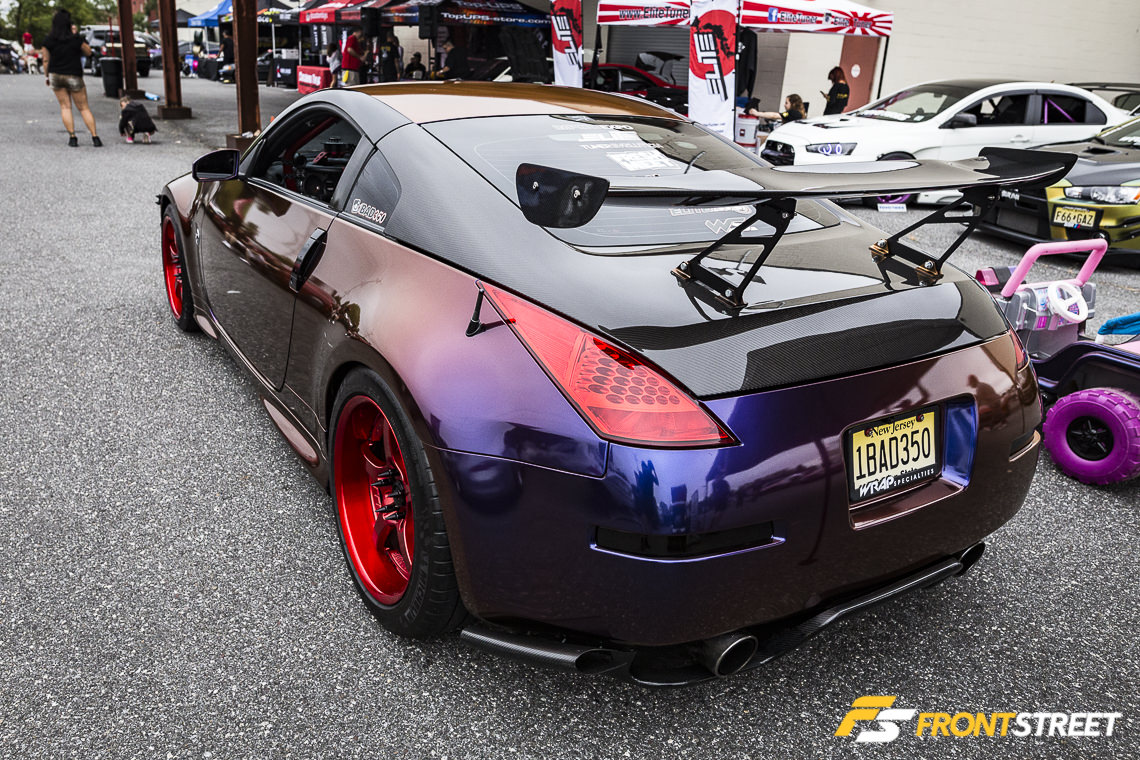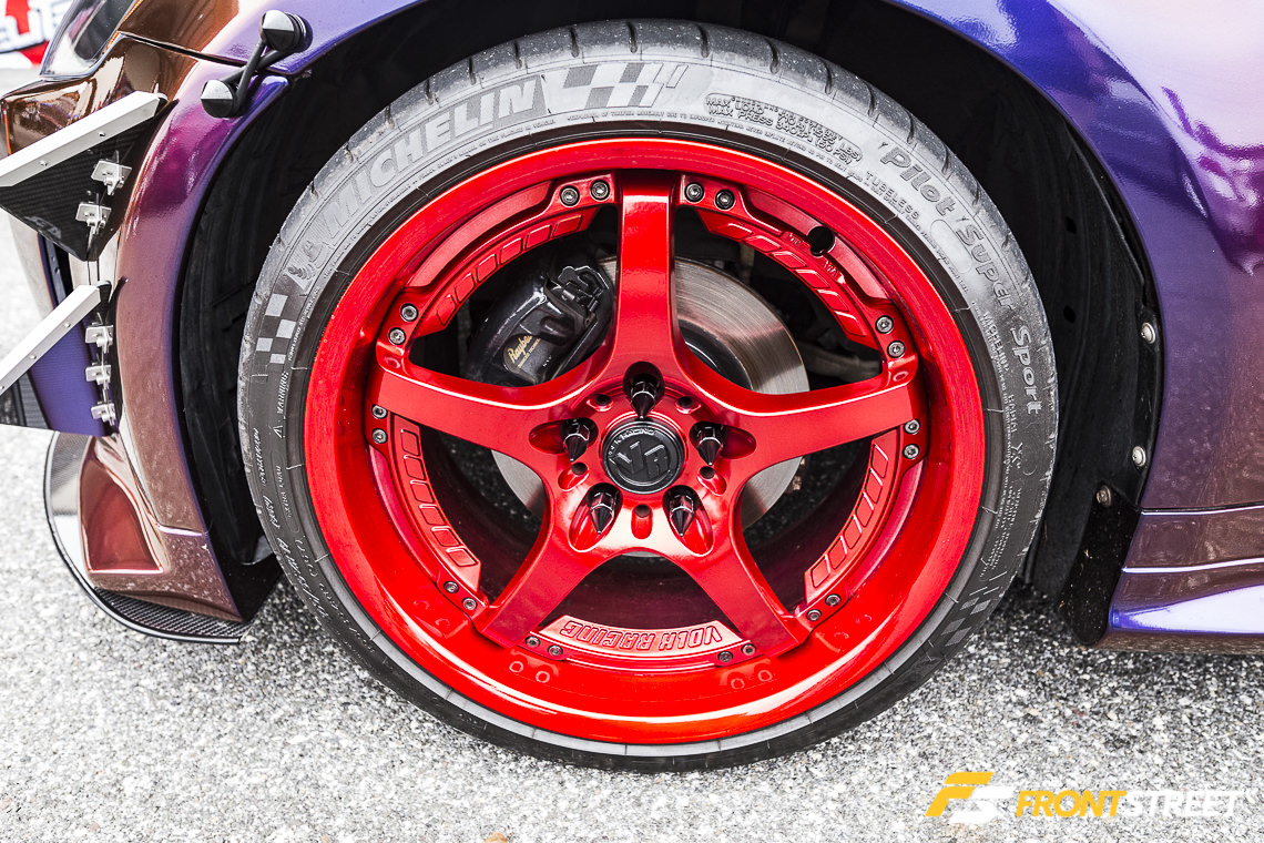 Matthew Ambrosino’s ’03 Nissan 350Z sports a wrap from Wrap Specialties and a sweet set of old-school powdercoated red Volk Racing GTS wheels wrapped in Michelin Pilot Super Sport rubber. While it’s not my personal preference, I can’t deny that this car is eye-catching. People were checking it out all day long.