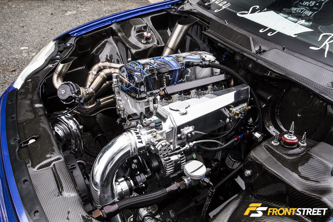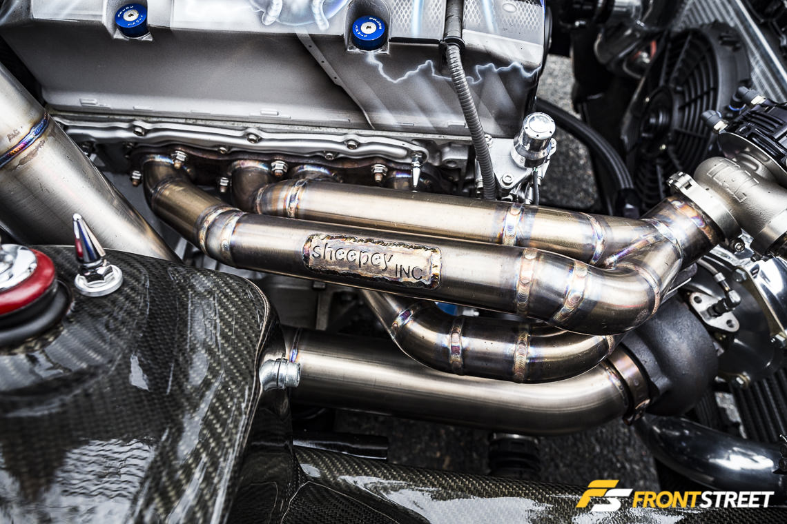 John Forrester’s Mustang is a tribute to his brothers in this great country’s armed forces; Forrester is himself an Iraq veteran. I’ve seen his car at shows before; it previously wore a completely different wrap and a supercharger under the hood, but these days he has a sweet turbo system from CPR Turbo Kits feeding into the Boss 302 intake manifold. John (left) is about the friendliest guy you’d ever want to meet and spent a bit of time talking with me about his car. Thanks for your service!