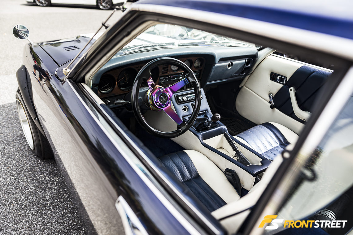 This first-gen Celica was in excellent shape, especially considering its vintage, somewhere between 1975 and 1977, designated by the square corner light in the fenders. It used the 20R 2.2-liter inline 4-cylinder engine and five-speed manual transmission.