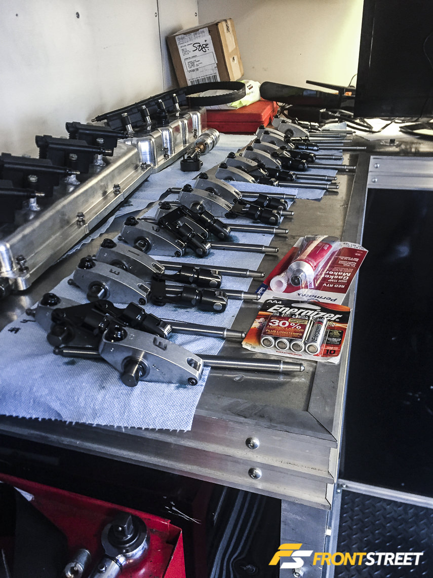 Entering the race, Pennsylvania’s Vinny Palazzolo was on top of the Street Outlaw points chase and in the driver’s seat for the championship, and then the team unloaded the car to discover an engine problem in the form of a damaged camshaft and lifter. Never one to quit when faced with hardship, Palazzolo sent his wife, Bridget, to Bennett Racing Engines to pick up a new camshaft and lifters. In case you didn’t realize, Bennett Racing Engines is in Haleyville, Alabama – 241 miles away. In the meantime, the R&S Automotive Specialists team set about removing the engine, taking the damaged camshaft out, and working to install the new parts and get the engine back up and running by 4AM Saturday morning. Here they warm it up and check for any other issues.