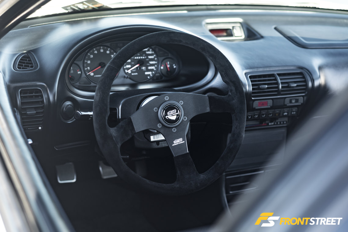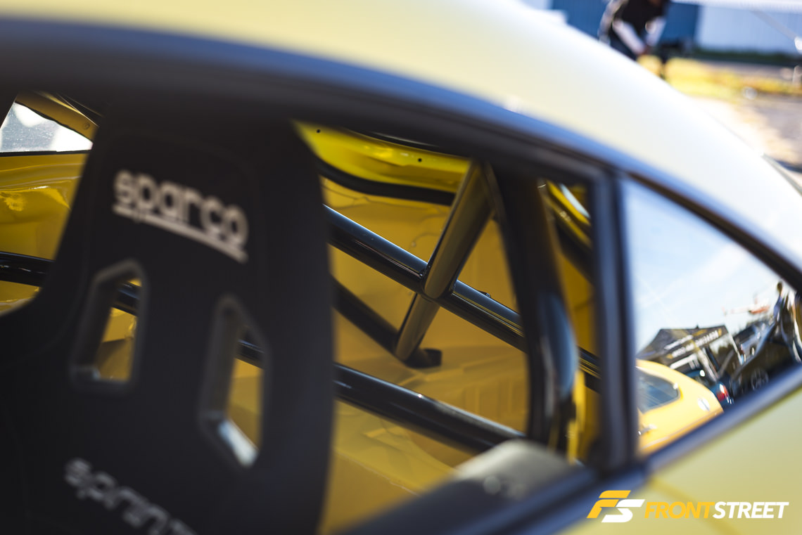 The entire car was stripped down and rebuilt from the ground up – there’s a structural roll cage on the inside covered up by a custom carbon fiber dashboard. The only piece of electronics in the interior is this tablet, which serves as the instrument panel located just behind the Momo steering wheel. The crown jewel of the entire car is under the hood, where an R34 Neo RB25 engine is situated. Equipped with a massive Borg Warner EFR turbo, this car has the power to back up its ferocious looks. When I talked about transplanting the award winner to Japan, I could easily see this car clicking the lap timer at Tsukuba Circuit.