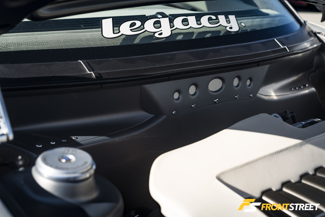 Loyal Front Street readers will remember our article on the new BBS RT88 wheel design, a concept that took a popular motorsports wheel and made it strong enough for the rigors of street driving. This set of RT88s is the exact set from our article, now mounted on this stunning F80-chassis BMW M3 belonging to our head-honcho – and Turn 14 Distribution’s Director of Marketing. The modifications to this car don’t stop at the wheels, as tons of M Performance carbon fiber pieces contrast the gleaming white paint. This may be his rowdy daily driver, but it was right at home in the car show, too.