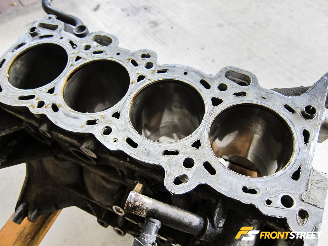 Upon purchasing the S14 long block, I began immediately tearing down the engine. It was during that time when I noticed a major red flag. The previous owner who sold my friend the engine had used silicone gasket sealant to seal the head gasket. The biggest fear was that silicone was used as a band aid to remedy either a warped head or damaged block.