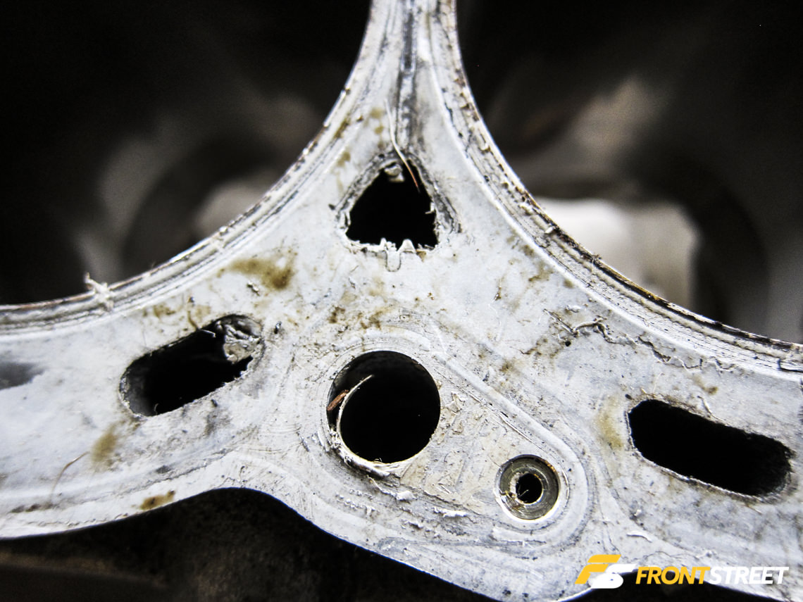 Regardless of the situation, I pressed on and stripped the block bare, knowing that this issue would have to be thoroughly inspected at the machine shop. I also found the crankshaft had some scratches and scoring on the main and rod journals that would also need to be corrected and polished prior to its return to service. Luckily, the internals of the SR20VE engine showed no signs of destruction, as all the parts appeared to be in pristine condition.
