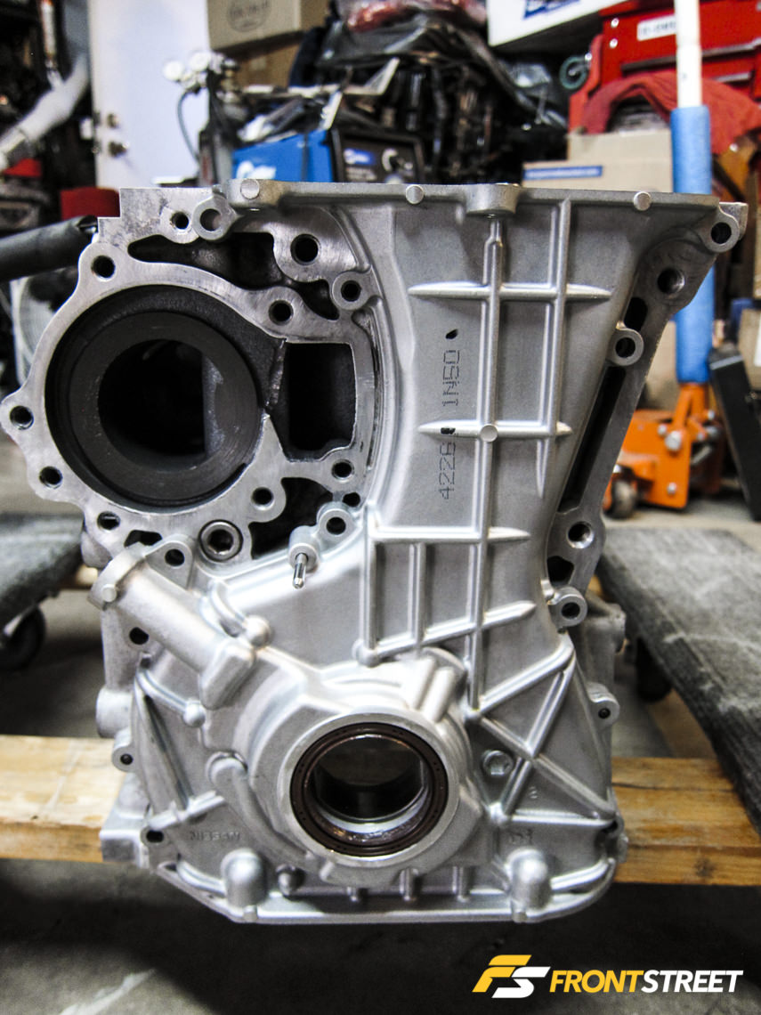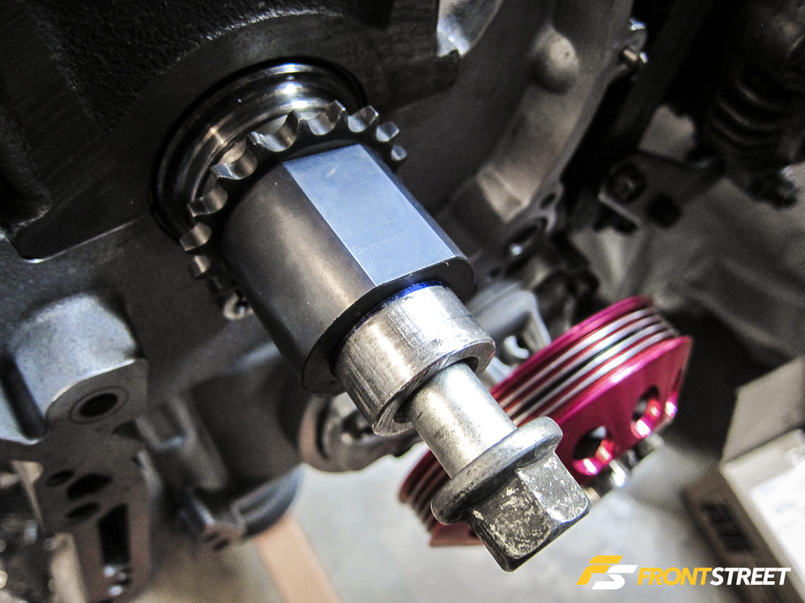 When assembling a hybrid setup using these components, a VE oil pump and front cover should be used. When using the VVL spacer the pulleys will be about .25-inch behind the crank pulley. To remedy this issue, either space out all the accessory pulleys to align correctly or request the machine shop to remove 3 mm from the pump snout. A VE oil pump spacer/pump driver needs to be used, as it is longer in order to perfectly align all the pulleys. It is also important to use the VE oil drive collar instead of the SR20DET unit or else the oil pump housing will crack when tightening the crank pulley – that’s not a good thing.