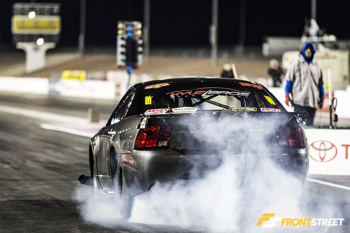 John Urist showed up to the event with a solid plan to do well in his Turn 14 Distribution-sponsored Mustang in the Xtreme Drag Radial class; the car had run 4.55 at No Mercy VII in Georgia in October and he was looking to improve upon that. Unfortunately for Urist, the ‘new combination bugs’ bit him again, and he was forced to bow out of competition prior to the end of qualifying. As Urist is one of only a few racers running in the small-tire ranks with the turbocharged/Coyote combination, and the only one running as quickly as he has, he’s still sorting out the failure points to eliminate them from his program.