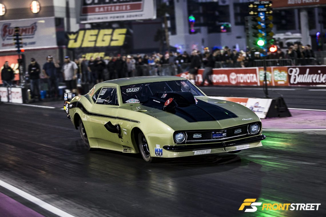 This car is one of the baddest real street cars on the planet – Tom Bailey’s Sick Seconds 2.0 ‘Beast Mode’ Camaro is one of the perennial contenders for the Hot Rod Drag Week title and has been deep into the six-second zone. Bailey made a vacation of the trip to Las Vegas; the Michigan business owner brought his son along for a 14-state round trip the youngster will likely never forget. Unfortunately, the team damaged the engine beyond repair during their first qualifying hit.